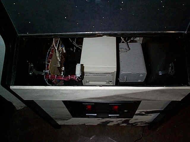 for private play. Inside the cabinet is a subwoofer (which you can see